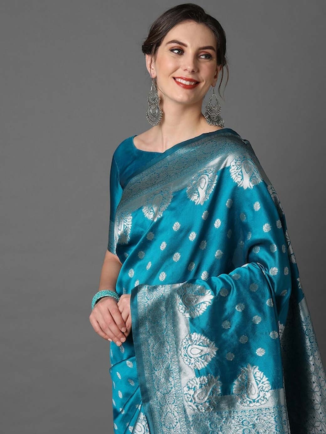 Blue and silver-coloured banarasi saree