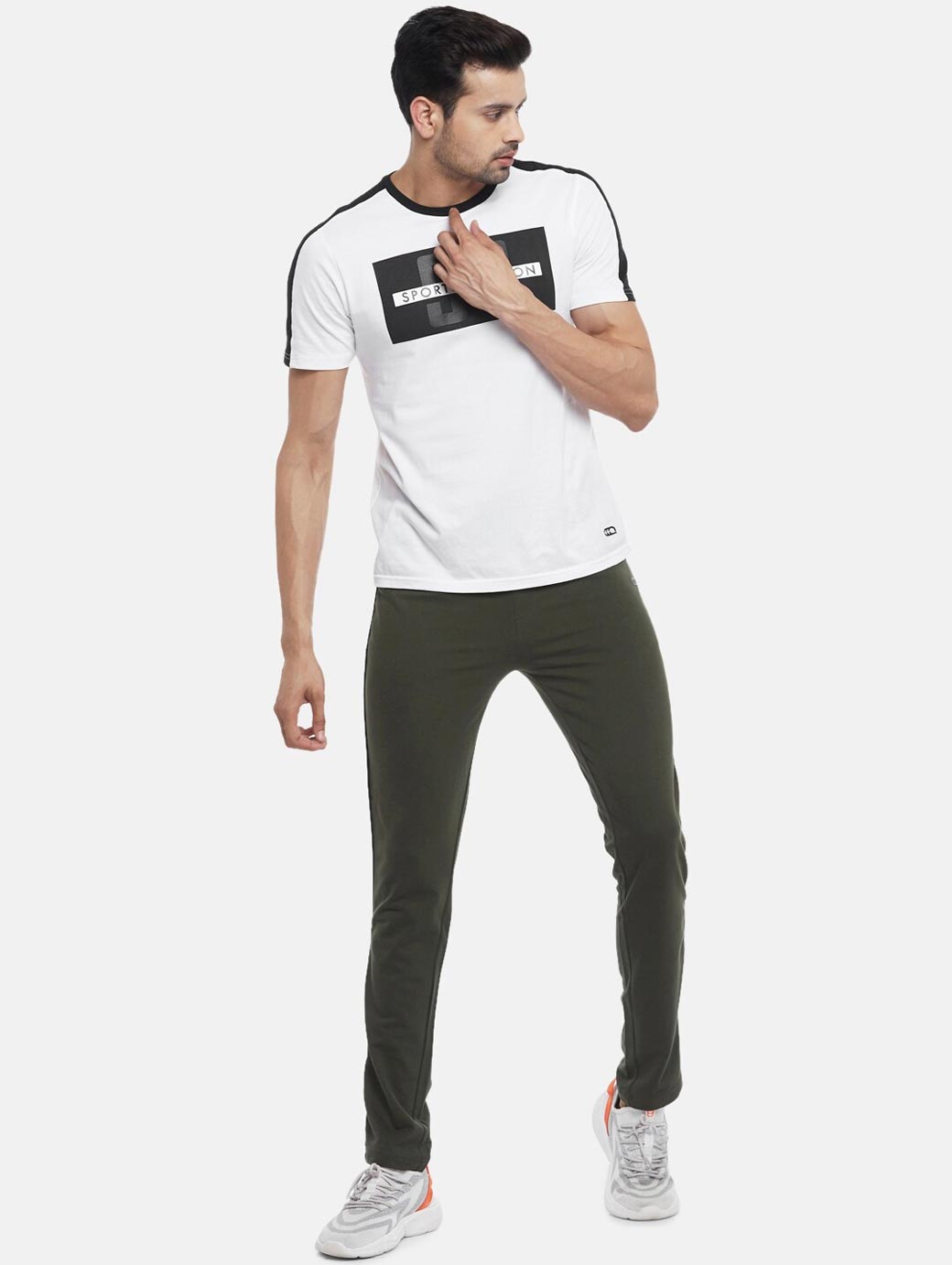 Men Olive-Green Solid Pure Cotton Slim-Fit Track Pants