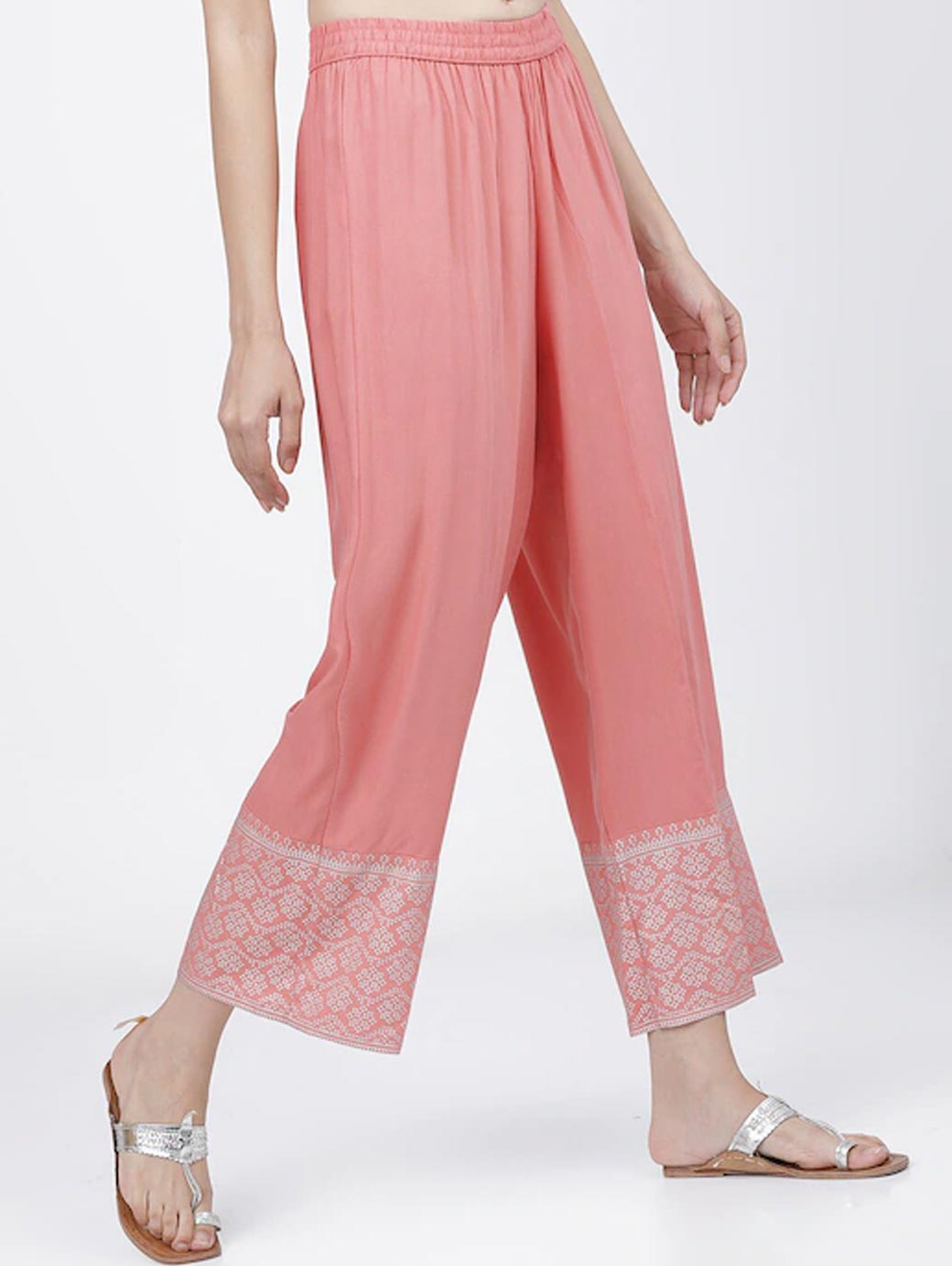 Coral and silver-toned woven palazzos