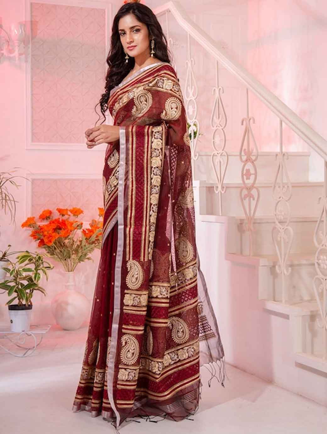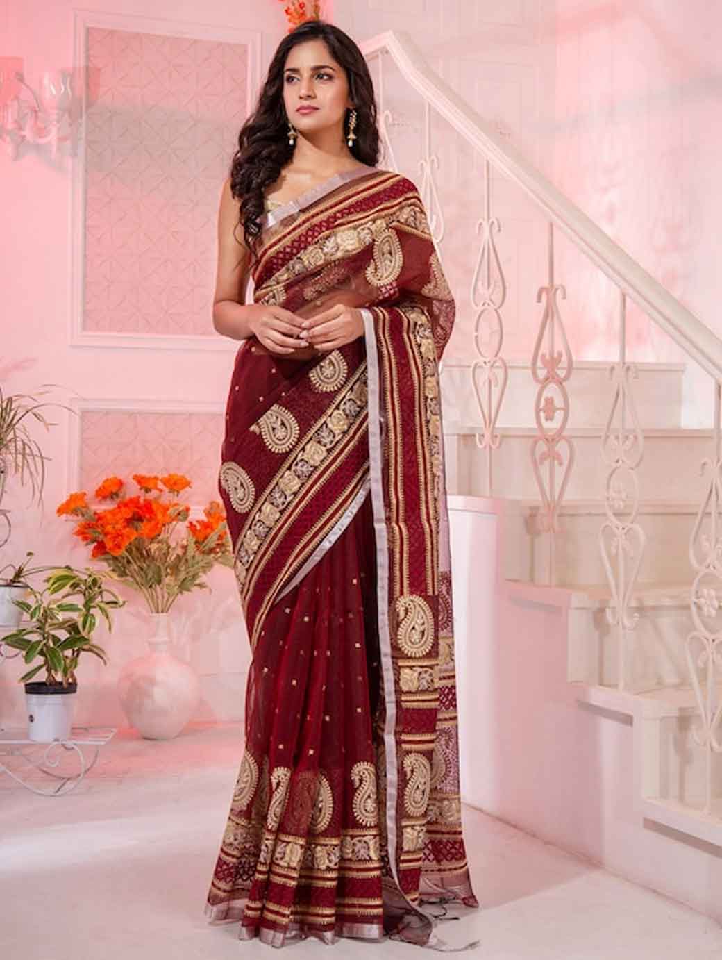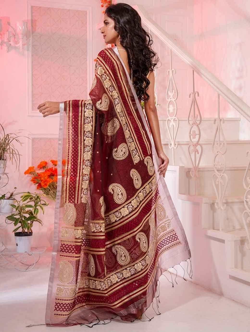 The blouse worn by the model might be for modelling purpose only. Check the image of the blouse piece to understand how the actual blouse piece looks like