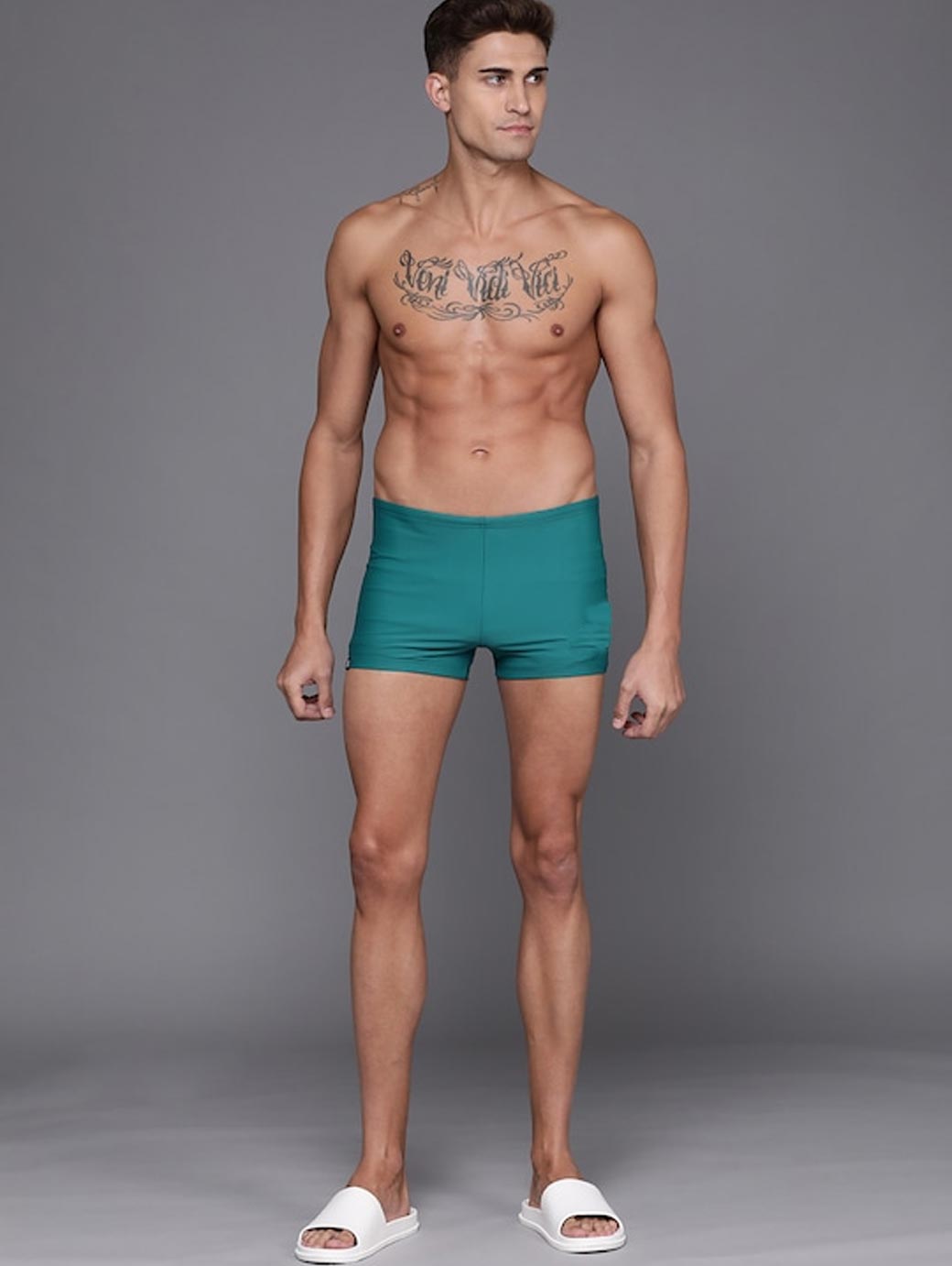Green solid swim shorts