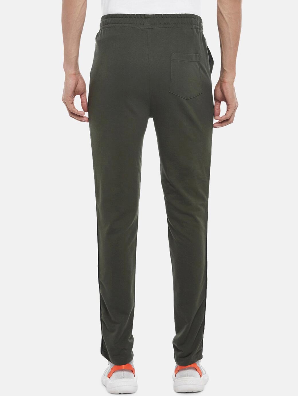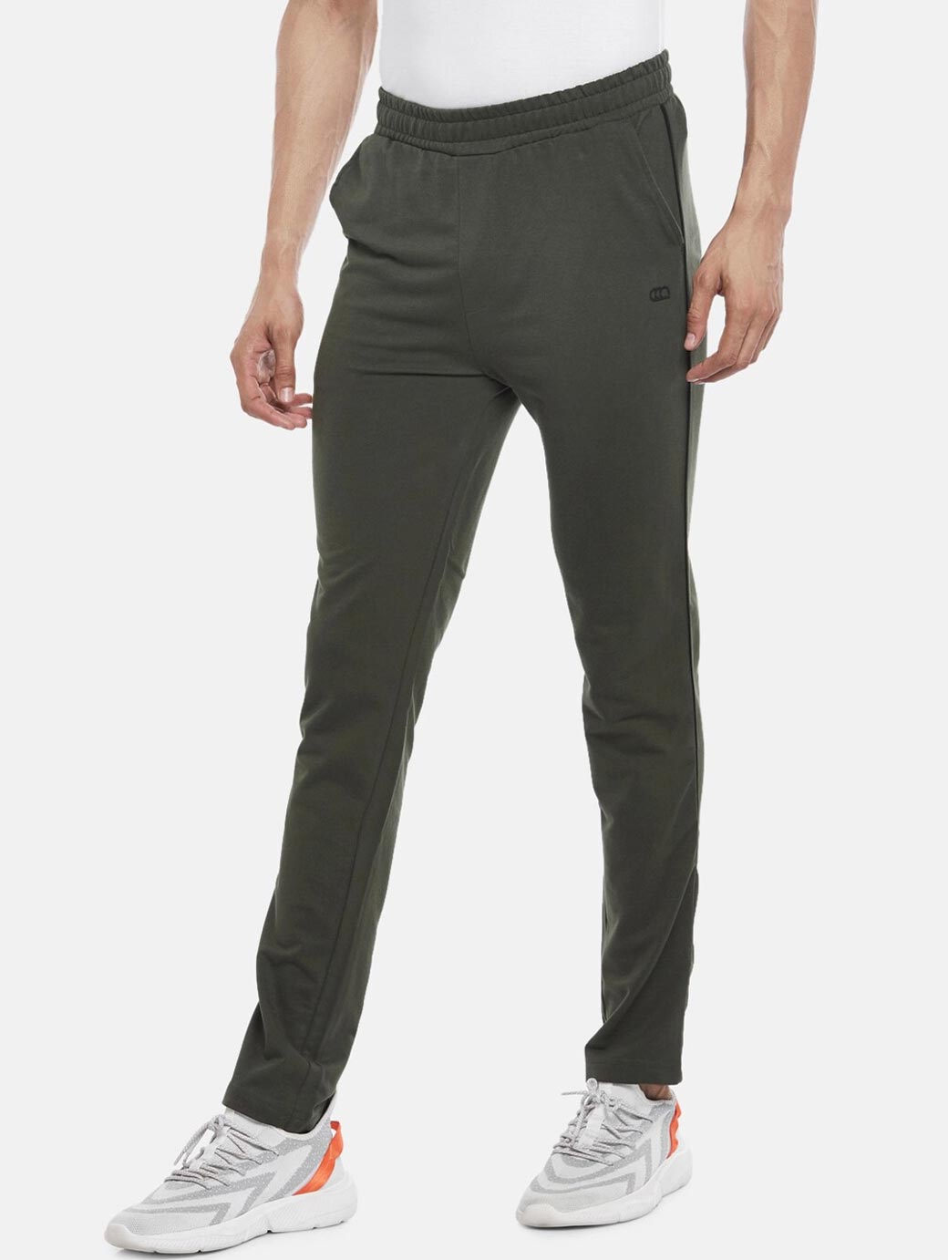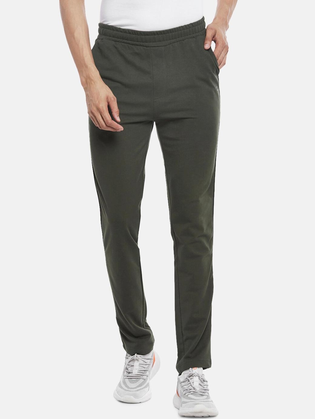 Men Olive-Green Solid Pure Cotton Slim-Fit Track Pants