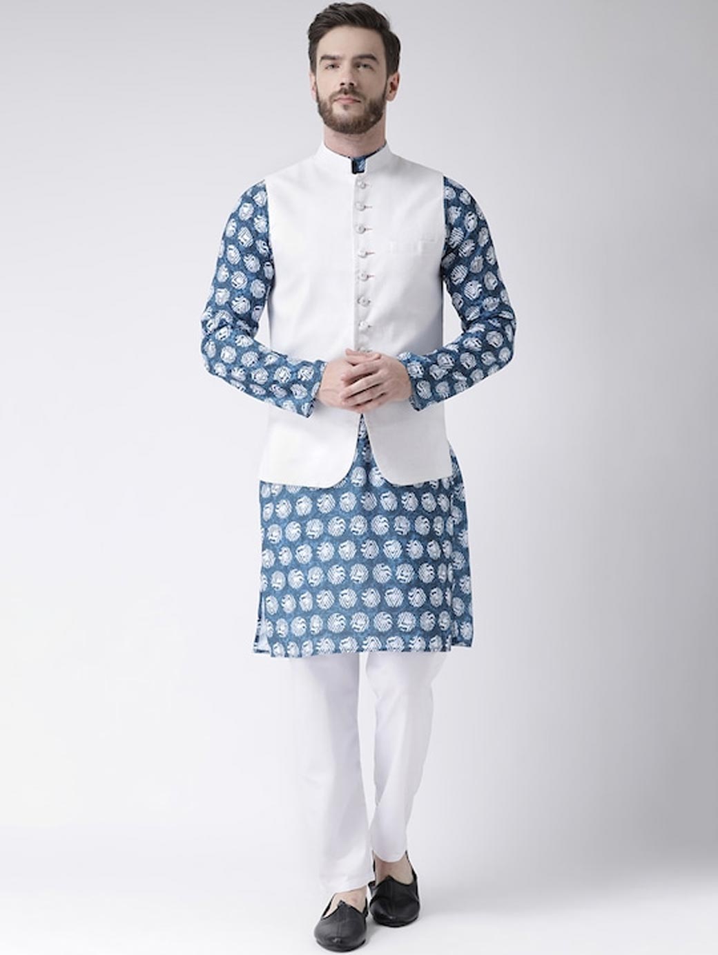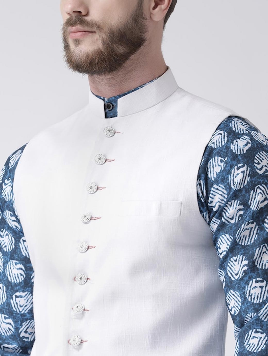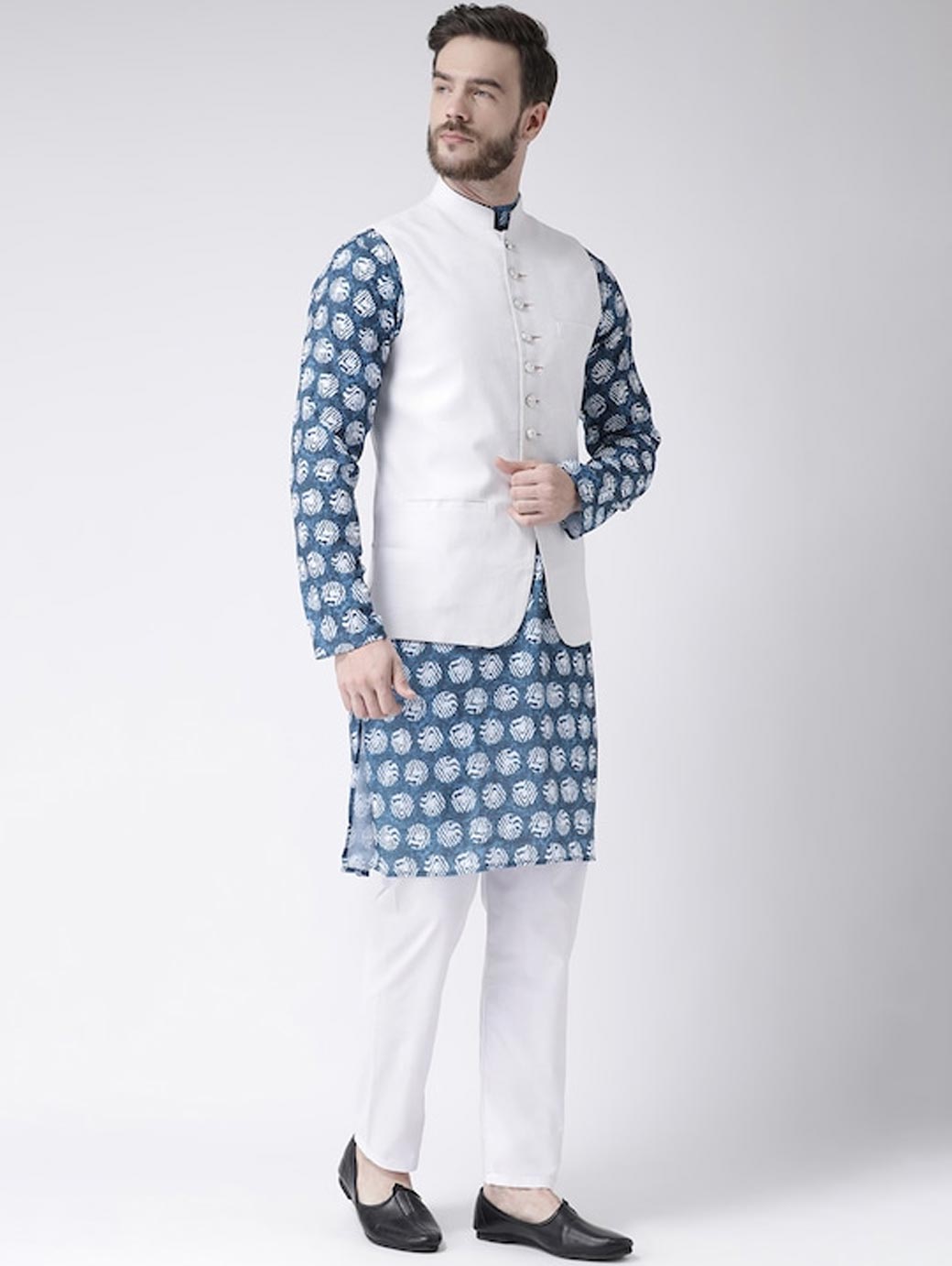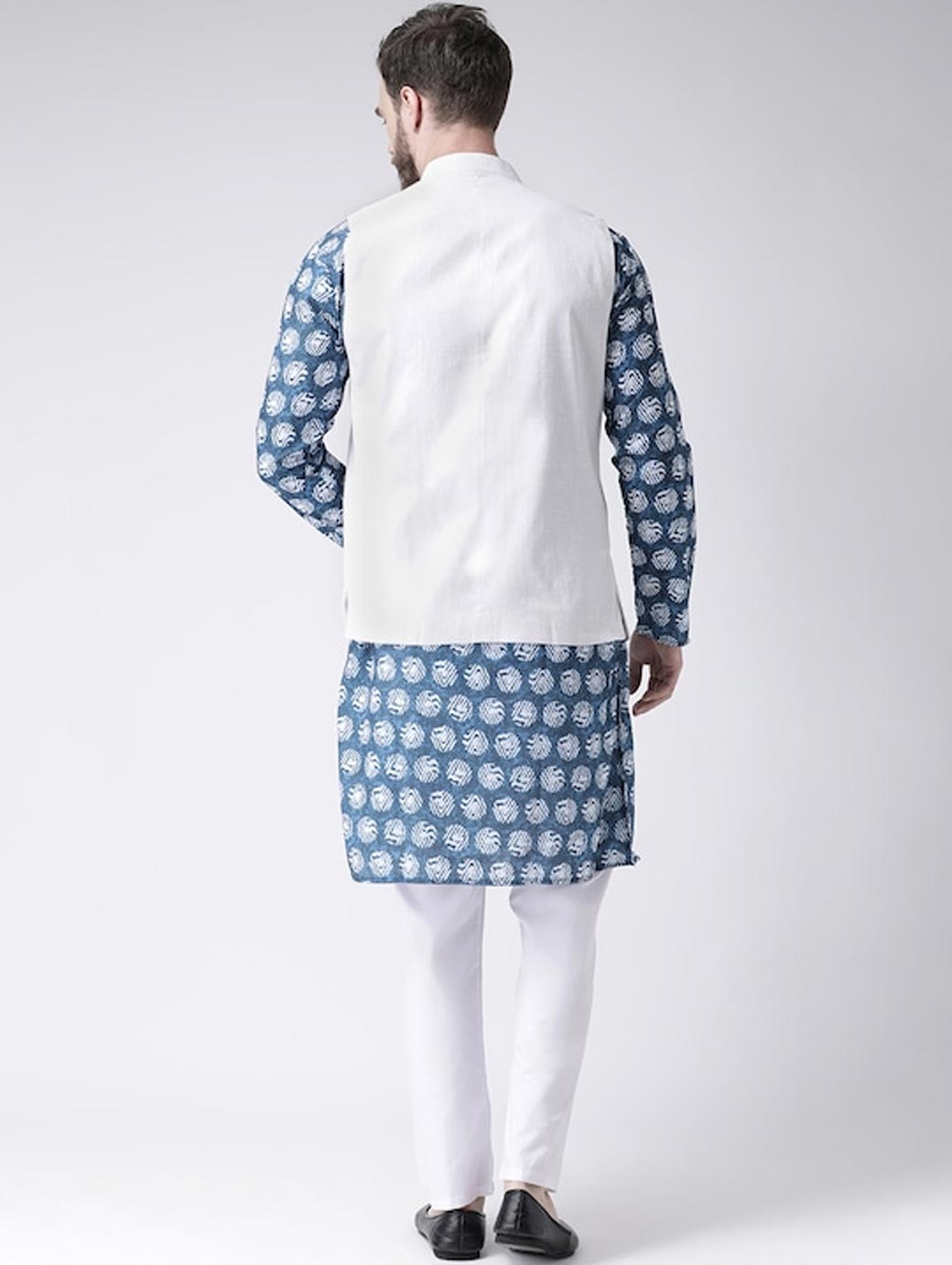 White printed Kurta with Churidar Kurta design: Floral printed Straight shape Regular style Mandarin collar, long regular sleeves 2 pockets Knee length with straight hem Cotton blend machine weave fabric Churidar design: Solid Churidar Elasticated waistband Drawstring closure
