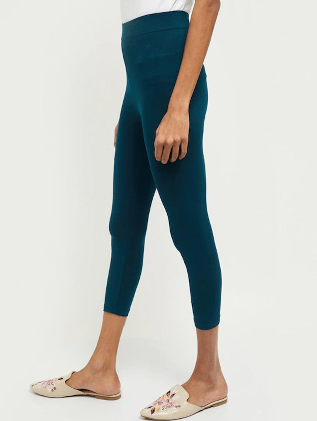 Women Teal Blue Solid Three Fourth-Length Leggings